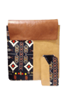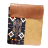 Elegant leather and fabric laptop case features a stunning blend of earthy tones and vibrant tribal patterns, reflecting a perfect harmony of tradition and modernity. The soft tan leather contrasts beautifully with the bold, geometric designs, creating a standout piece for your collection. Compact and versatile, this laptop case is ideal for carrying essentials, whether you're heading to a meeting or a casual outing.