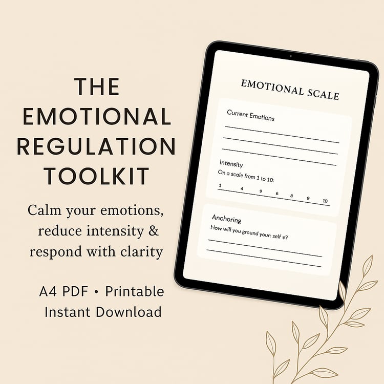 A powerful 3-workbook emotional wellness system to regulate emotions, ease anxiety, and restore calm. Includes Emotional Regulation Toolkit, Anxiety Relief Workbook, and Mental Declutter Journal. Printable + digital.