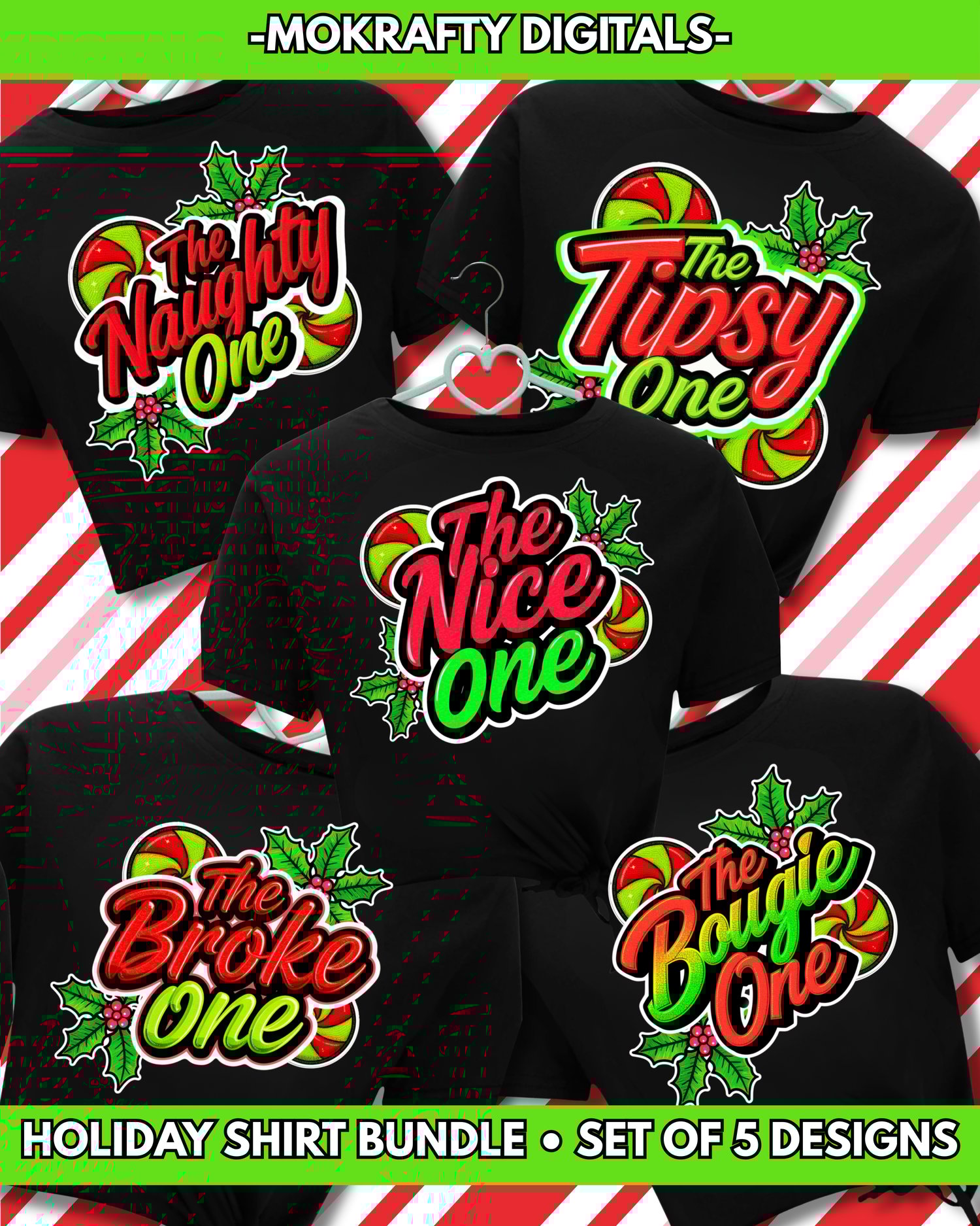 Christmas Holiday Shirt Bundle (Set of 5) | Naughty Nice Tipsy Bougie Broke Designs