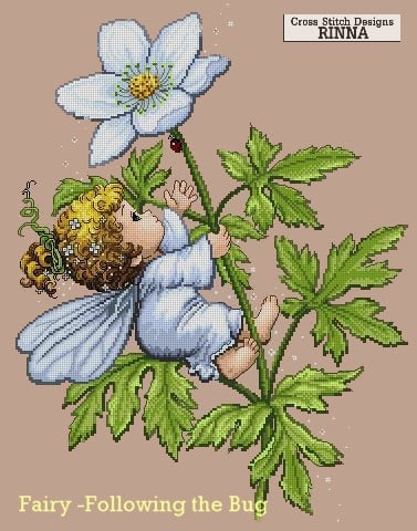 Fairy Following a Ladybug - Cross Stitch PDF Downloadable Pattern
