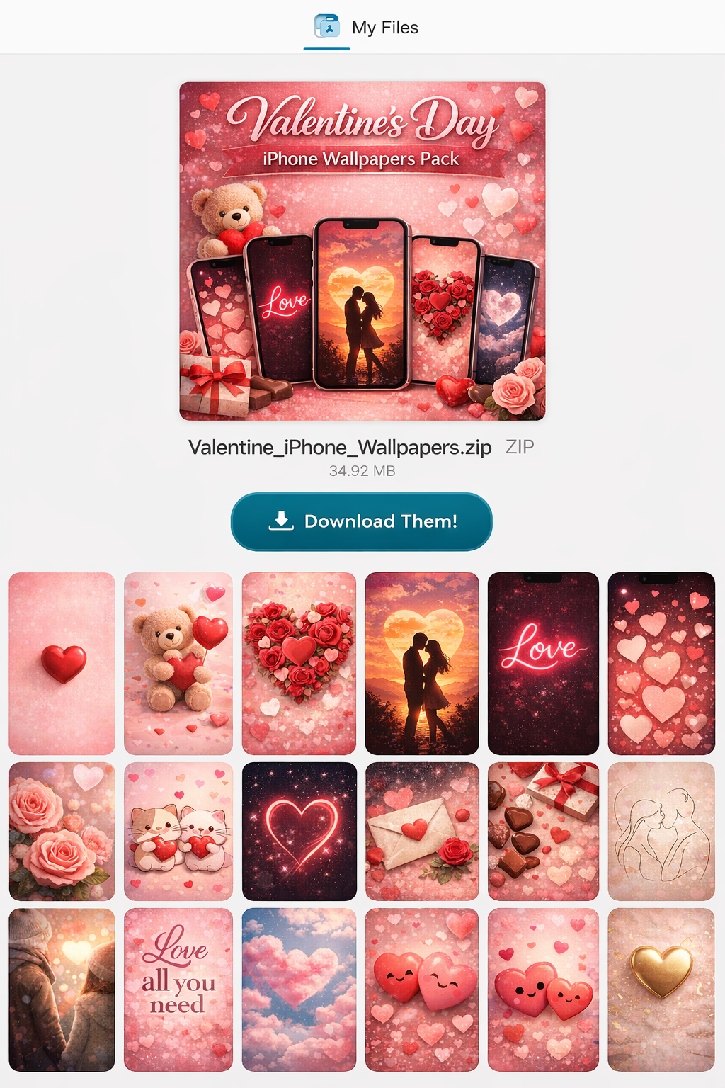 This Valentine’s Day iPhone Wallpaper Pack includes 20 beautifully designed romantic wallpapers perfect for lock screens and home screens. Whether you love minimalist aesthetics, cute illustrations, or luxury romantic vibes, this pack has something for you.