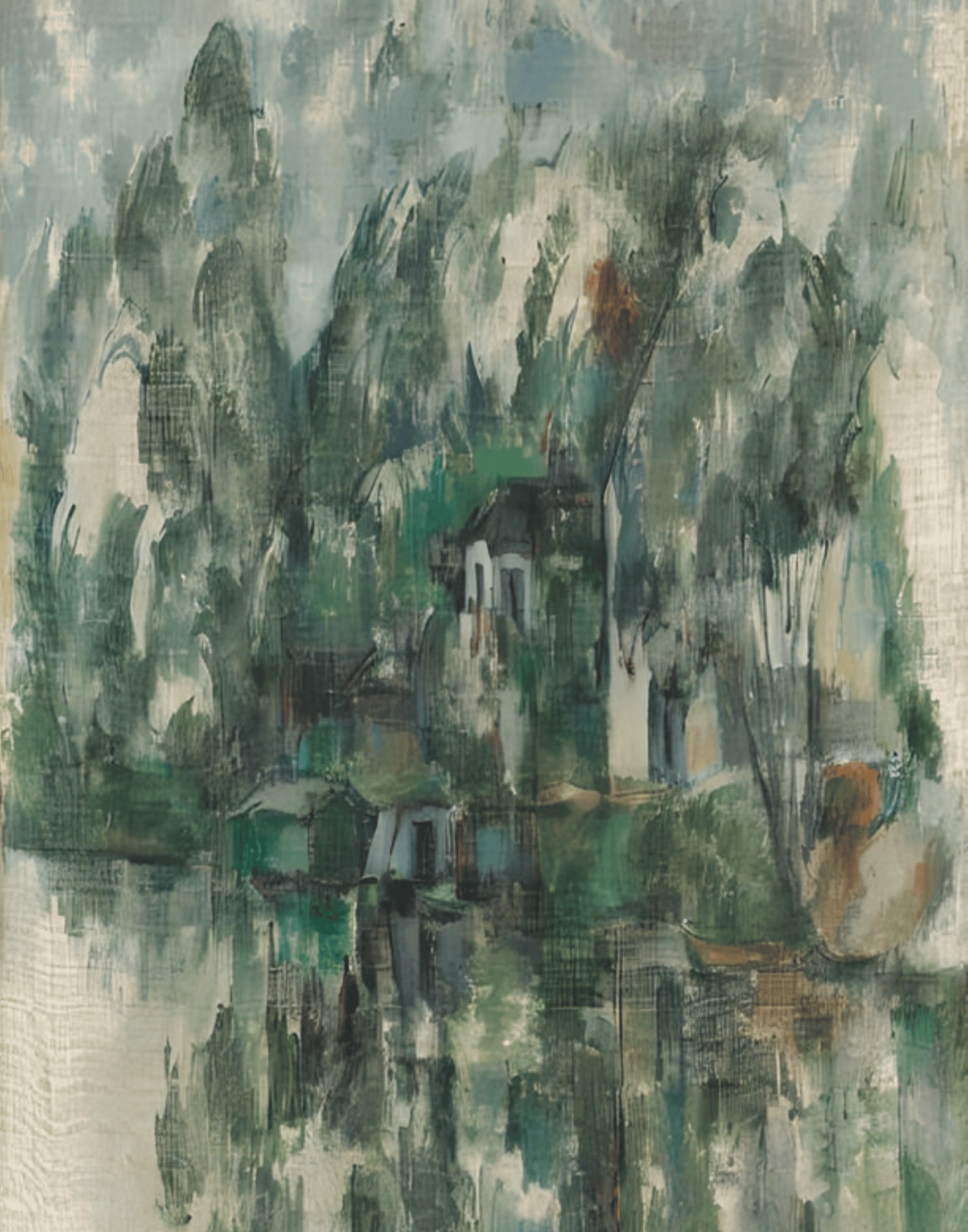 Ancient Vacation House, Vintage River Nature Art, Beautiful Nature, Watercolor Paintin