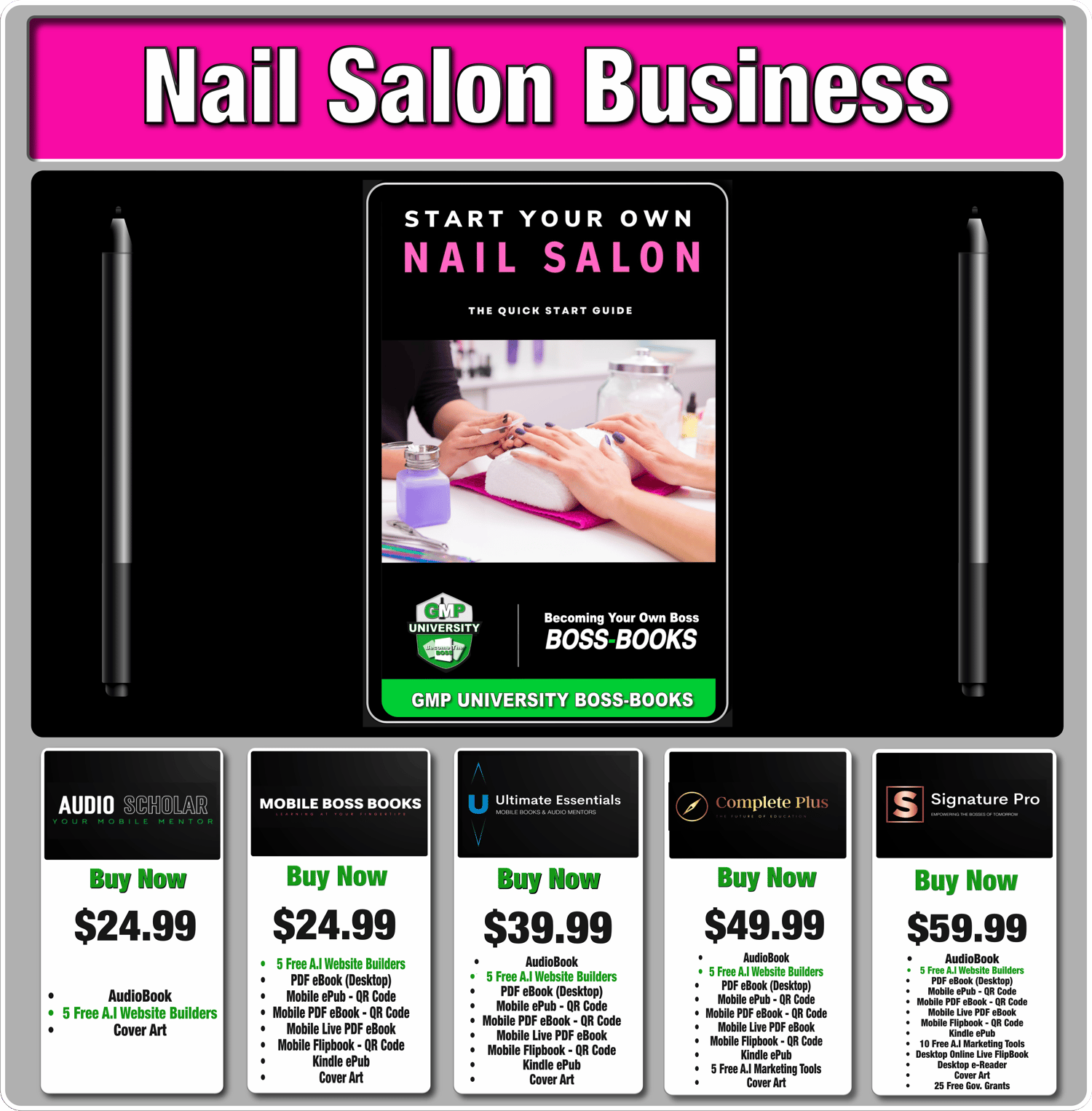 Nail Shop Business - Complete Plus - With AudioBook / Mobile QR Code's / 5 Free A.I Marketing Tools / 5 Free Website Builders & More