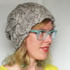 layers of fat cables twist up this winter hat