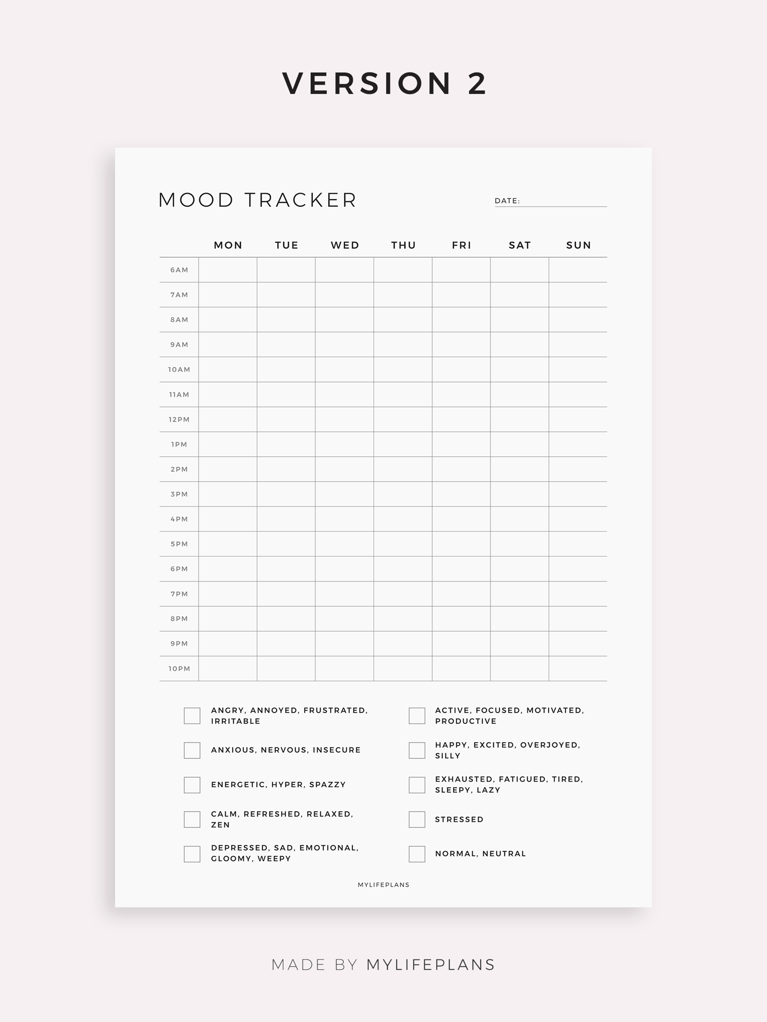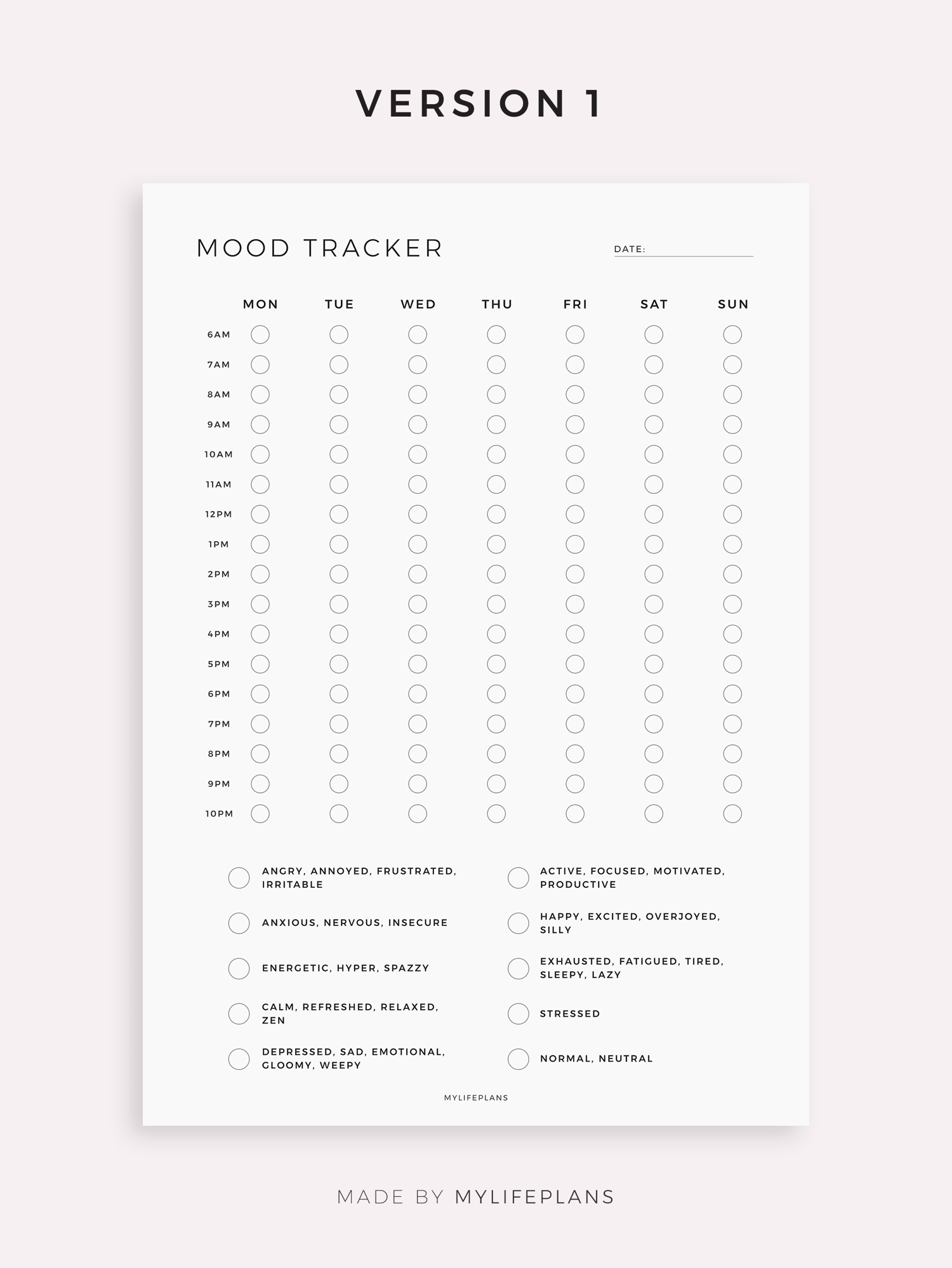 Hourly Mood Tracker Template for Remarkable, Supernote, Kindle Scribe, Boox, Kobo