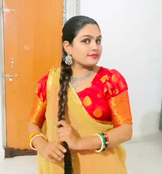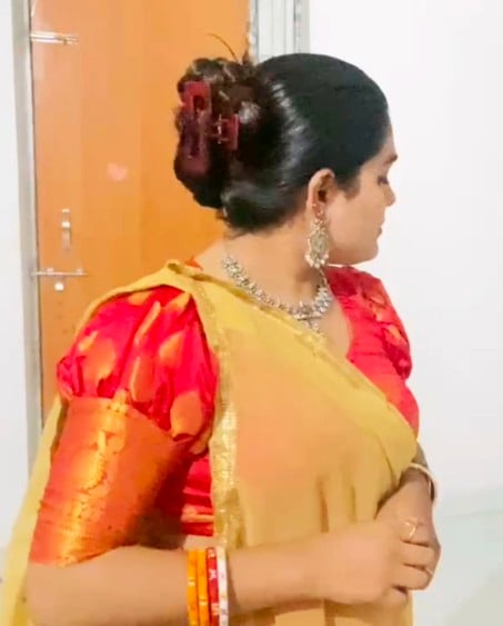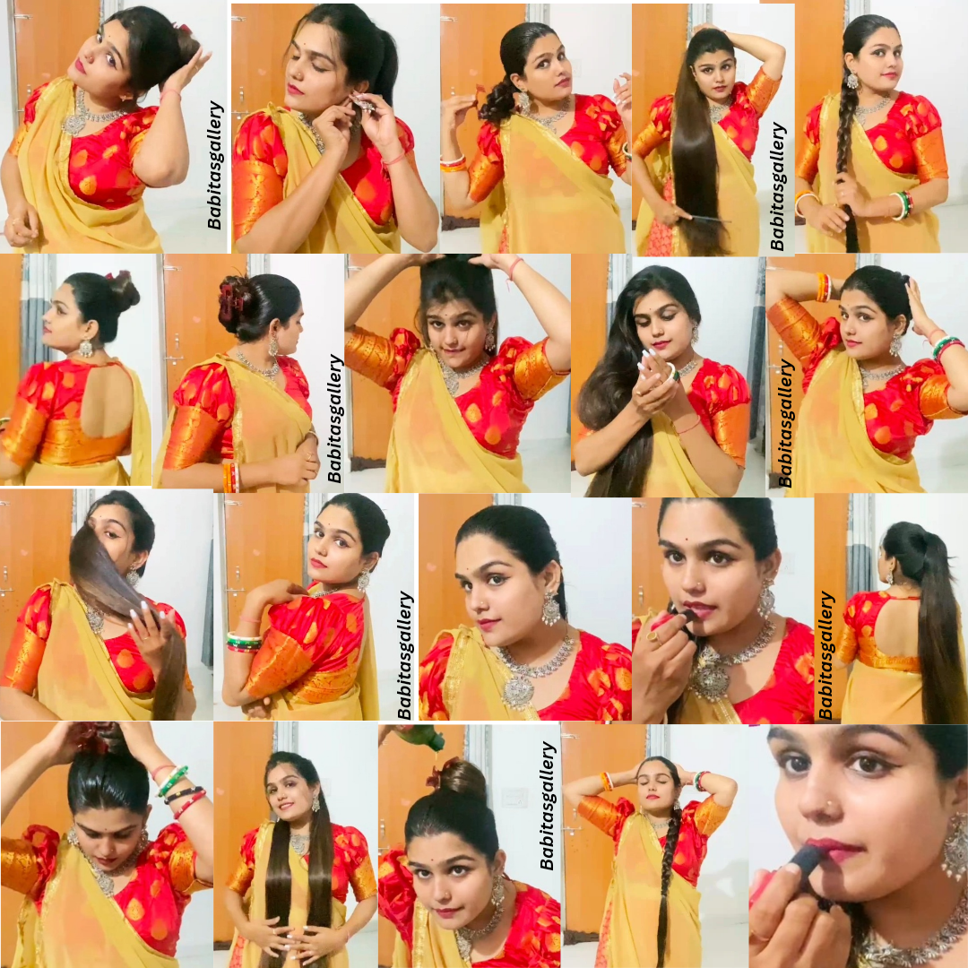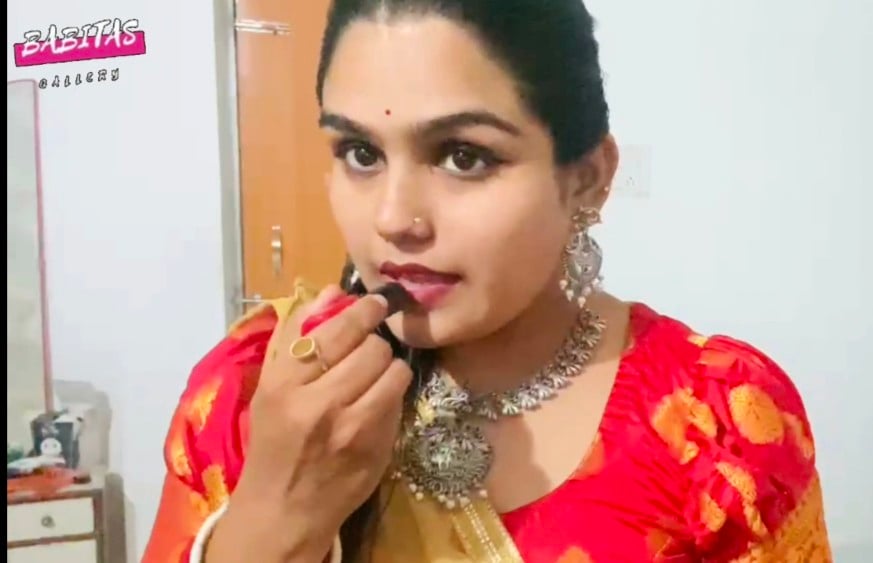 Oiling & Sleekhairstyles getting ready for festival look by wearing lipstick jhumka