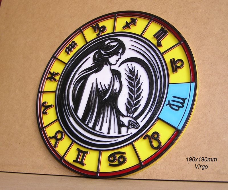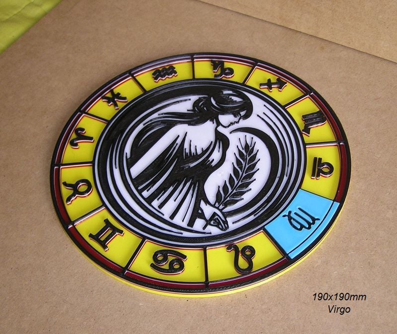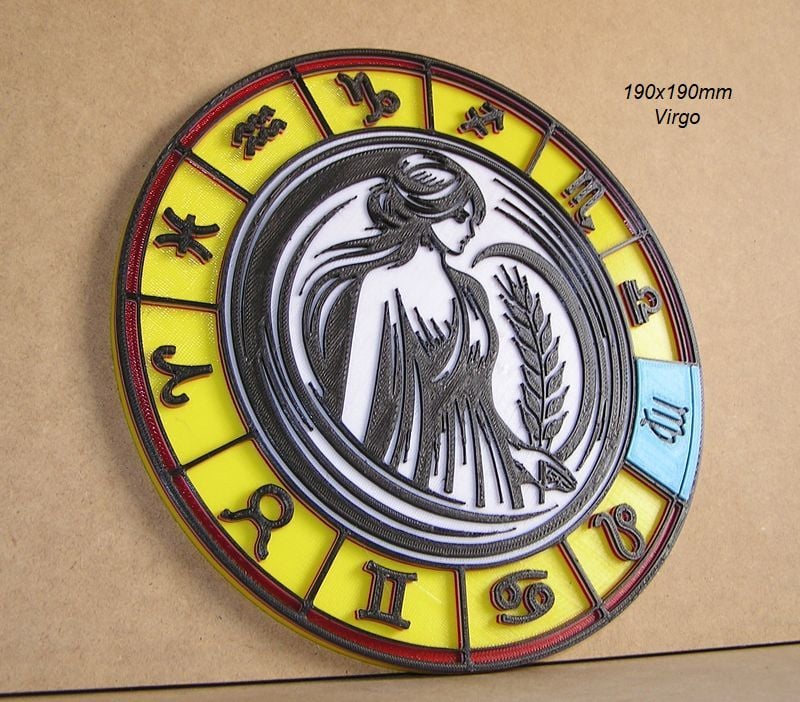 Logo, silhouette, horoscope, Virgo, these STL and Gcode files have been created to be printed in various colors with any FDM type printer. The color changes have been made with the Elegoo Neptune 3 Pro printer, but they can be printed on any printer.