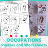 Super cute and eye catching worksheets for students to identify what tools does each occupation use to perform their jobs. Students will read different scenarios and choose who is best to perform the duty. By doing these activities students will discern in real life what occupation performs which operation and also get them thinking about which role/occupation they will occupy in society when they are older. Includes cut and paste activities where students will match each profession with their tools which can either be used for interactive notebooks or as a stand alone page. Cool puzzles are awesome to entertain as they learn and remember the tools needed to get the job done. Writing practice included.