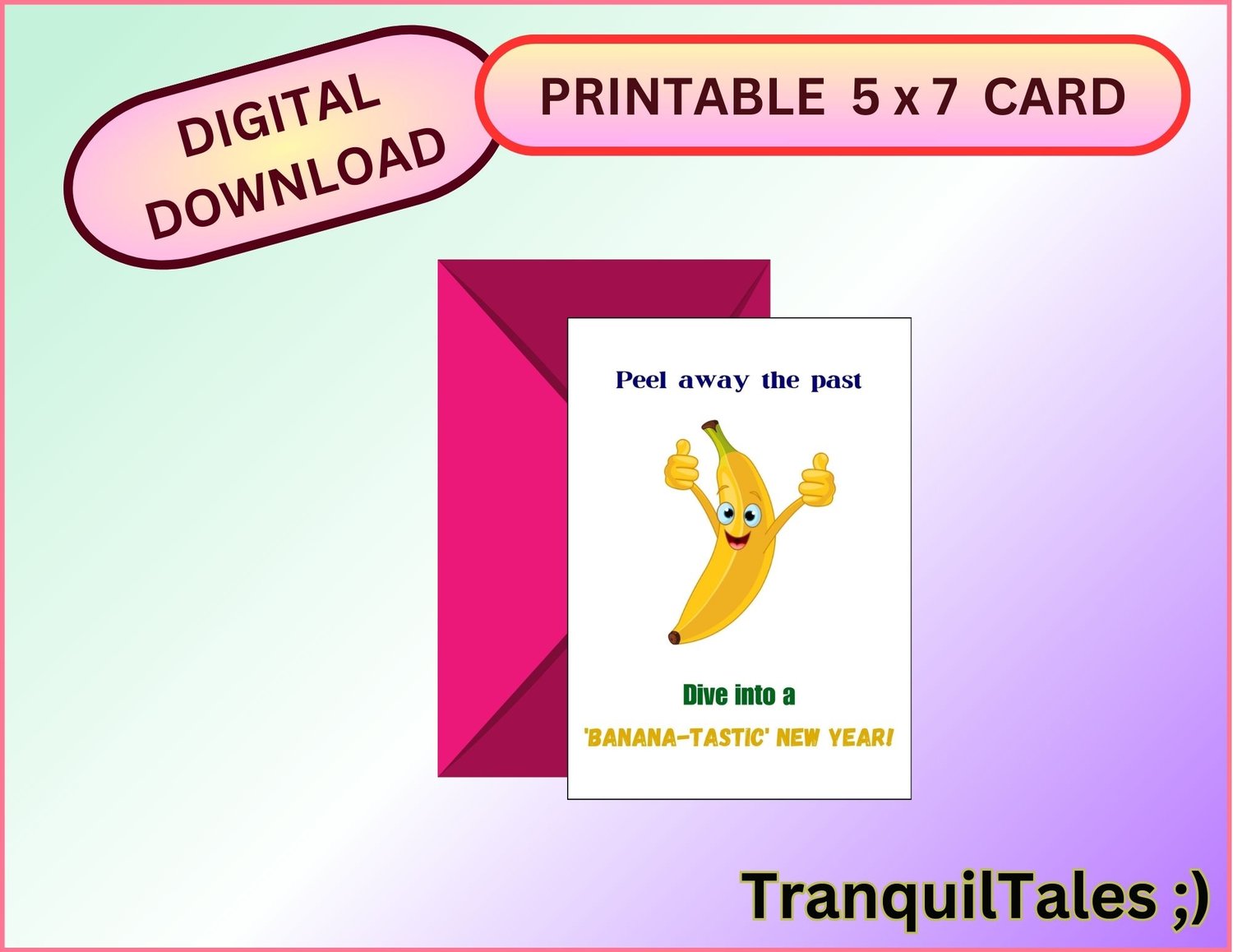 Peel away the past Dive into a 'BANANA-TASTIC' NEW YAER! Card - 5" x 7" inches - New Year card - PDF File