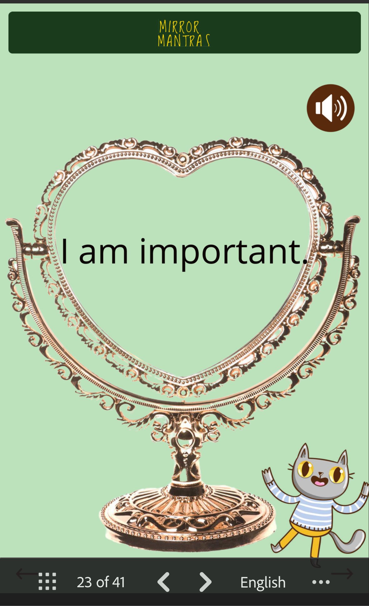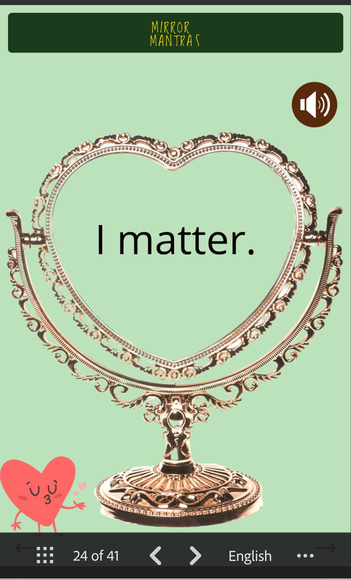 - Push-button audio for each mantra (hear it, feel it, repeat it)