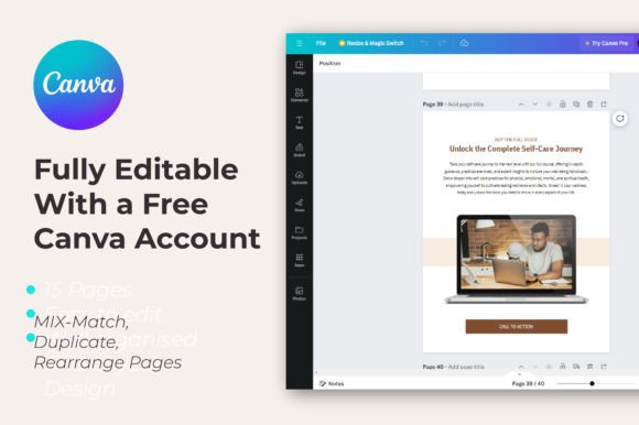 Created with CANVA users in mind, this eBook and WorkBook template will help you save time and create a pixel-perfect, professional-looking eBook and WorkBook in minutes. Use the intuitive drag-and-drop interface to add text and images or change fonts and colors. Choose from multiple page variations, duplicate the pages you need, and delete the ones you don’t to create endless ebook designs.