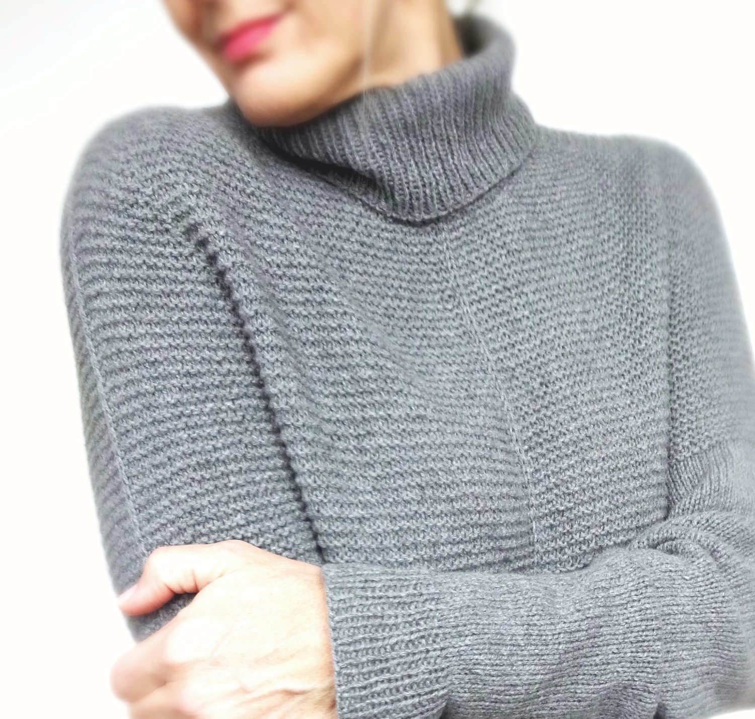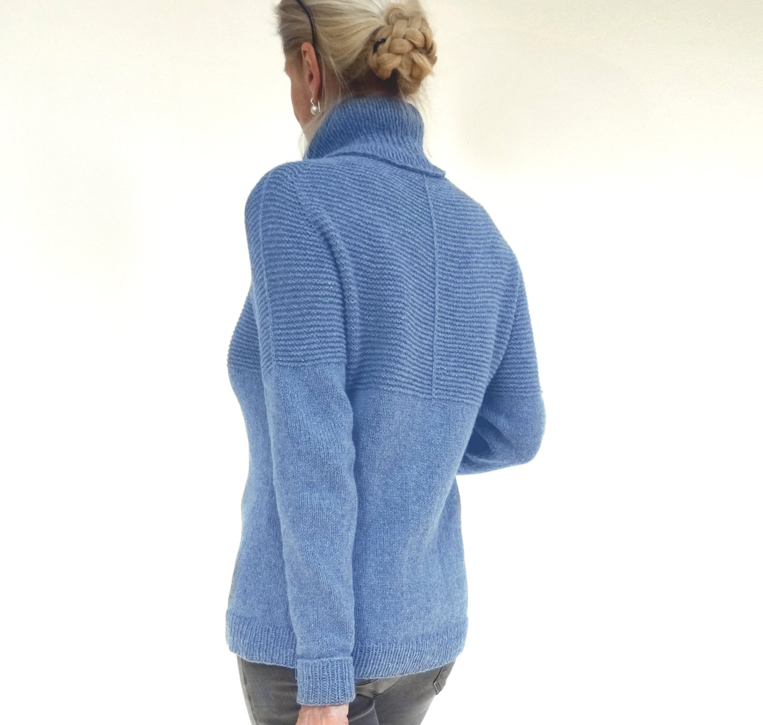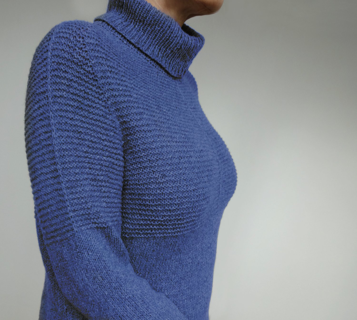 La Linea is a classic sweater with garter ribbing at the upper part of the body, intermitted by slipstitch lines.