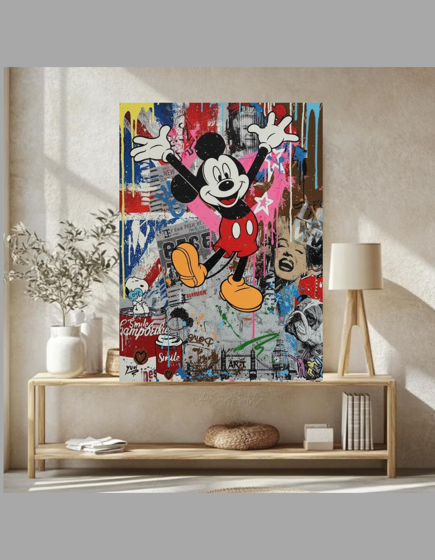 Mickey Mouse Pop Art PNG - Joyful Disney Icon Graffiti Print with Union Jack Background, Marilyn Monroe, and Street Art Motifs, Downloadable Wall Decor for Cartoon Lovers