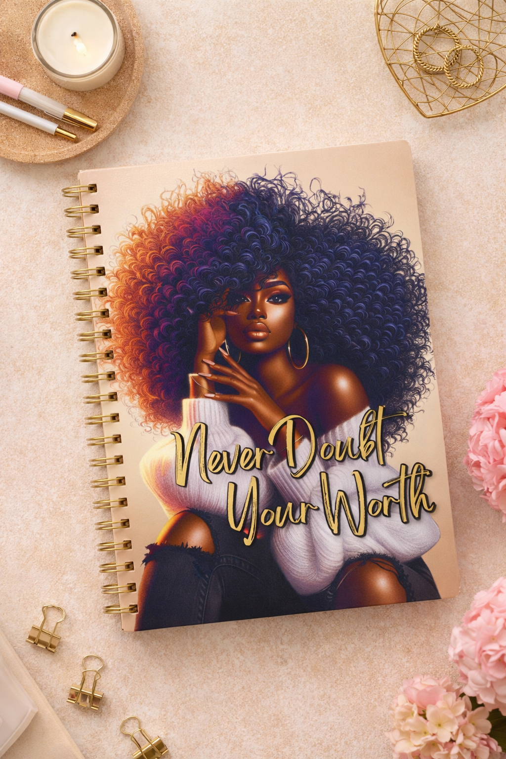 This bold and beautiful journal cover was designed for the confident, healing, boss woman who knows she is becoming HER. If you create journals, planners, or digital products, this cover is perfect for your next high-selling product.