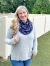 To achieve use one to two skeins of assigned pooling for the forward pass and one skein of a coordinating tonal for the return pass. Note: If you choose to only use one skein of assigned pooling yarn for the forward pass, the cowl might end up short. The length of the finished cowl varies based on the length of the assigned pooling color in the yarn. If you choose this option, I suggest buying two skeins of the assigned pooling.