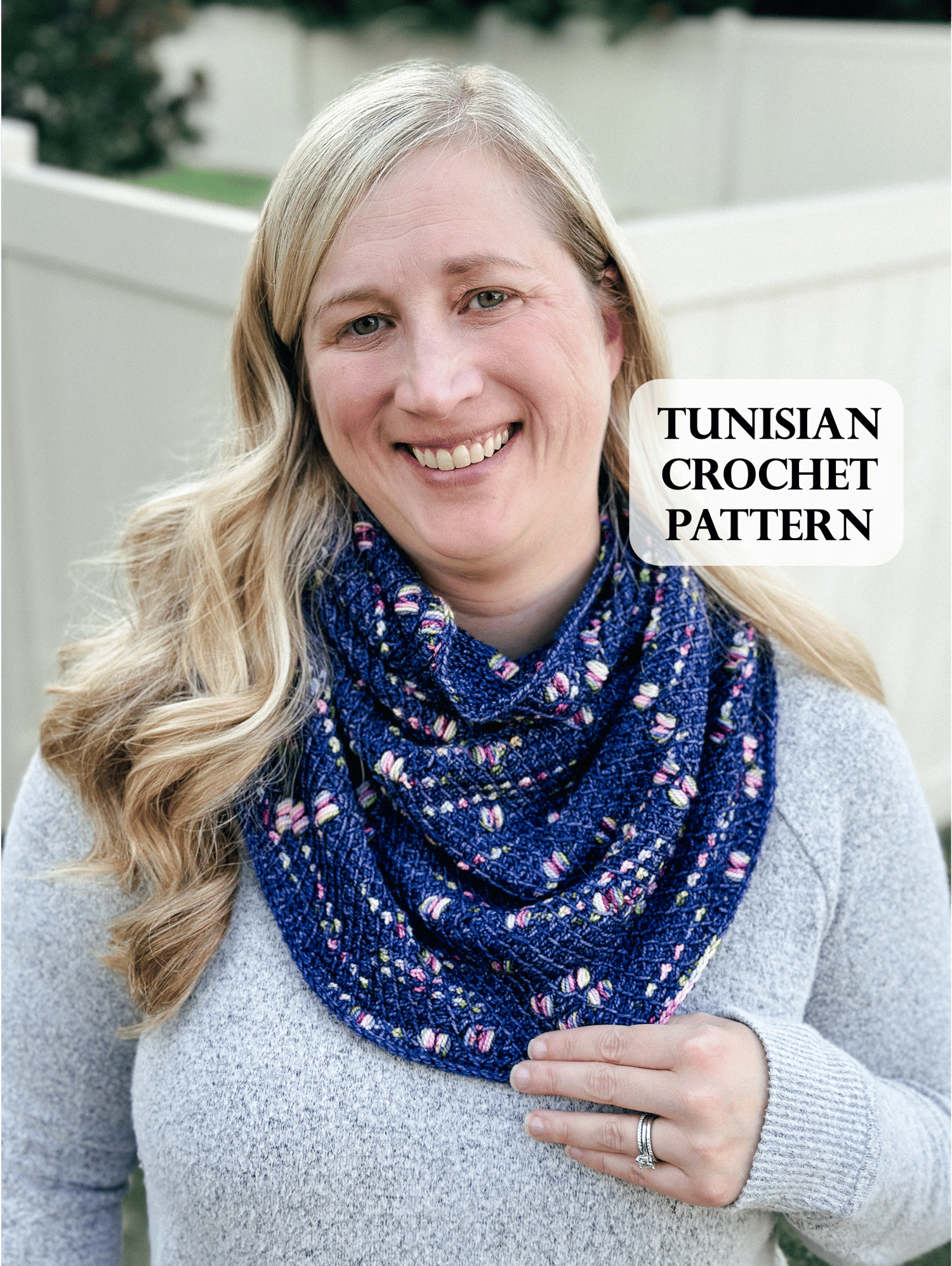 The Metamorphic Cowl is a Tunisian crochet design worked in the round, created to showcase the beauty of assigned pooling yarn. Pops of color transform into intentional bursts of texture, making each cowl unique and eye-catching.
