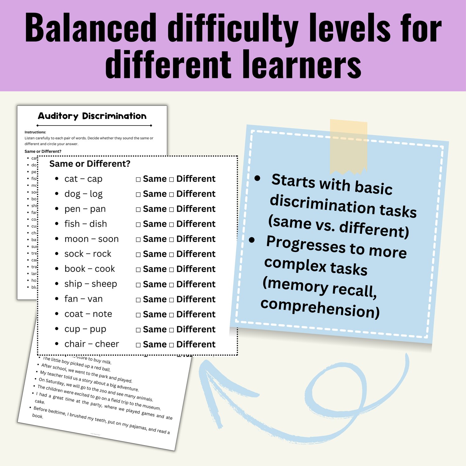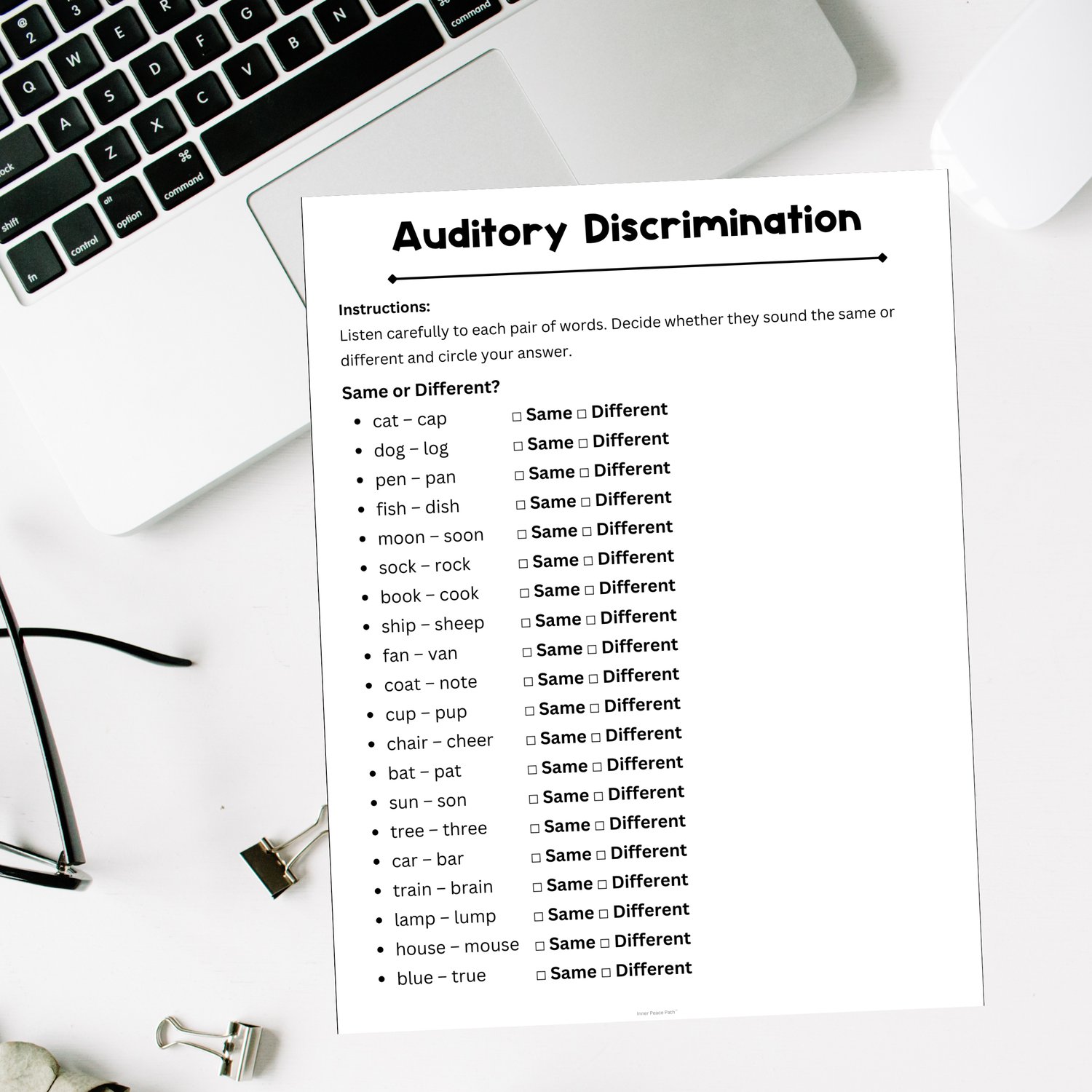✅ Auditory Discrimination – Identify whether words sound the same or different