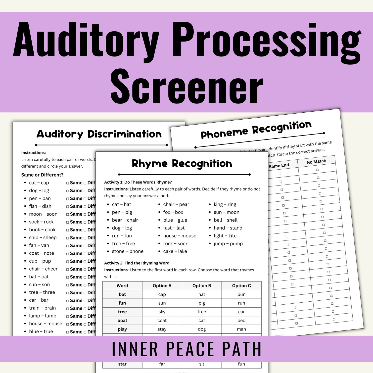 This Auditory Processing Screener is designed to evaluate auditory discrimination, memory, and comprehension through structured, research-based activities. This resource helps identify auditory processing challenges in students who struggle with distinguishing sounds, following verbal instructions, or recalling spoken information.