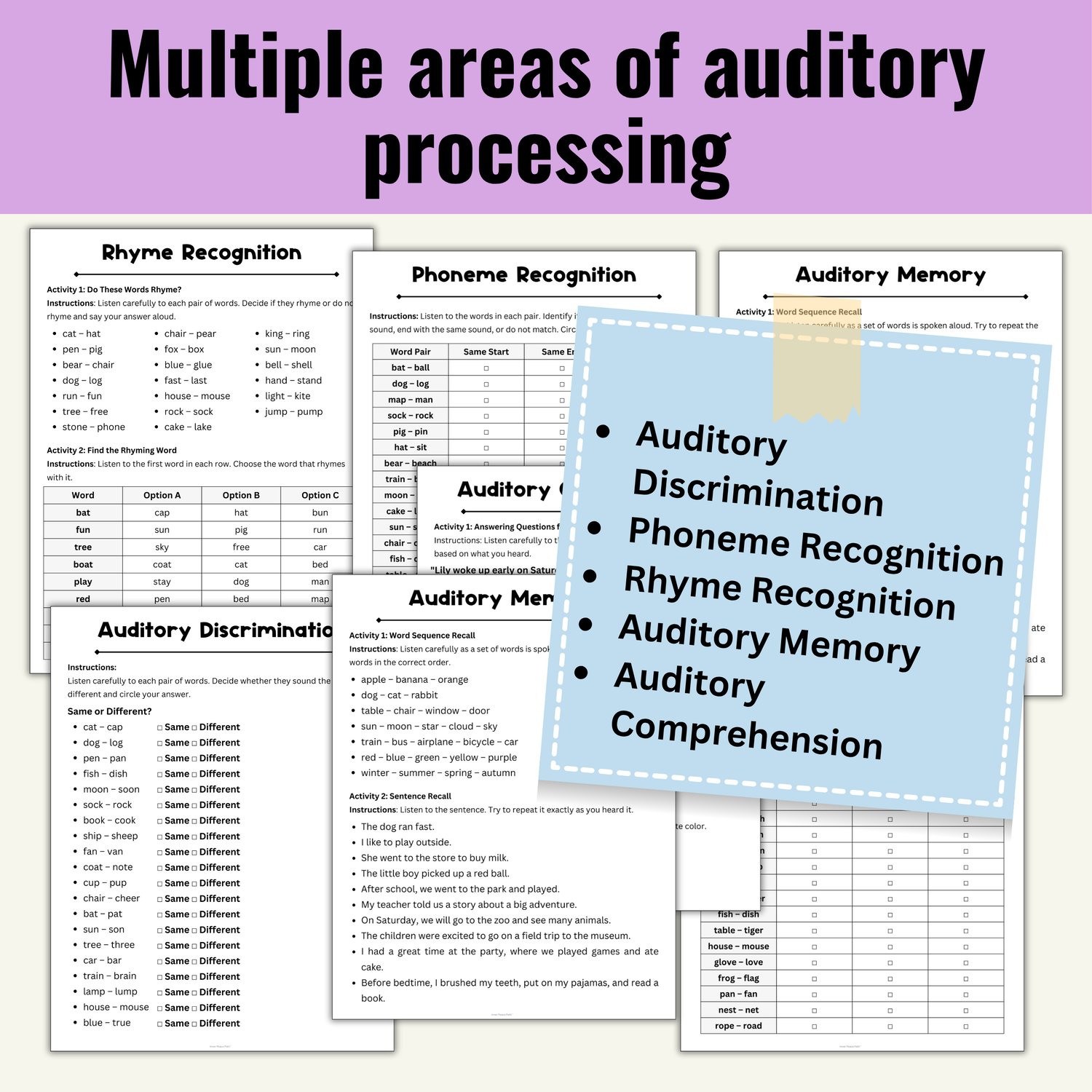 Auditory Processing Screener Speech Theray | Auditory Discrimination, Memory