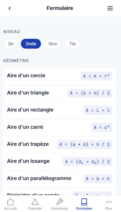 • Formulaire complet : 63 formules par niveau scolaire