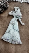 This delicate ornament was made for those who still believe in fairy tales. A graceful princess in a floral gown seems to have stepped right out of a dream — serene, radiant, and full of quiet magic.