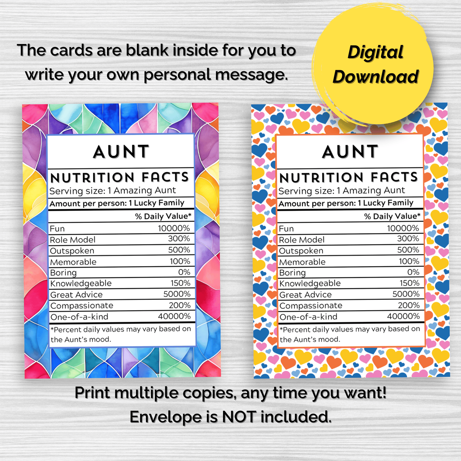 - Print multiple copies, any time you want! Envelope is NOT included.
