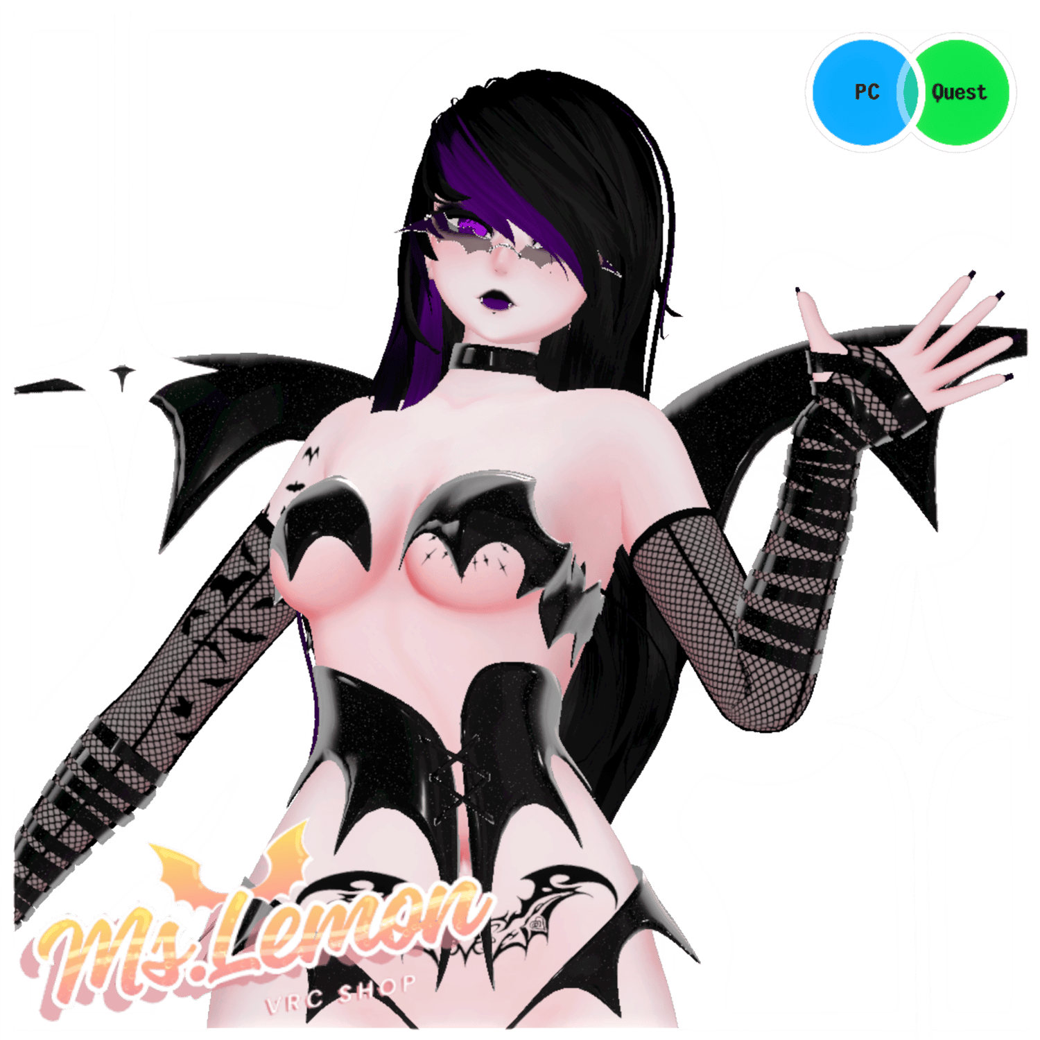 Bat Rave Outfit - Cringe, Pj Pants- NovaPie, Shirt - Luvdy, Stockings - Mutt, Bat Garter - phenodotnix, Cookie - Ms.Lemonhead, Nippy Piercings - Empress Moon, Bat Glasses - Vinuzhka, Bat Plush - CocoVR, Bodysuit - TTW, Fishnets - Mutt