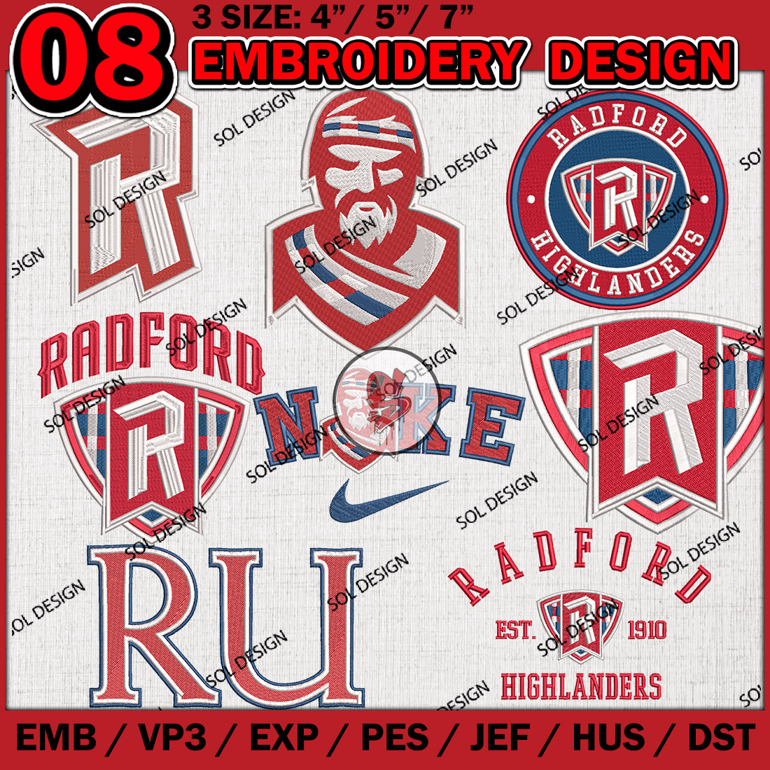 8 Radford Highlanders Bundle Embroidery Files, College Football Embroidery Designs, NCAA Radford Highlanders Machine embroidery Design Bundle, Ncaa Radford Logo bundle, Digital Download