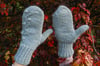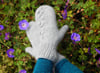 These mittens come in a range of sizes to suit most requirements AND feature a novel and rather lovely thumb construction. It is worked in the round completely top down, including the thumb, and the decreases create a thumb that appears from the centre of your palm (as your thumb does anatomically) for extra dexterity in these thick mittens.