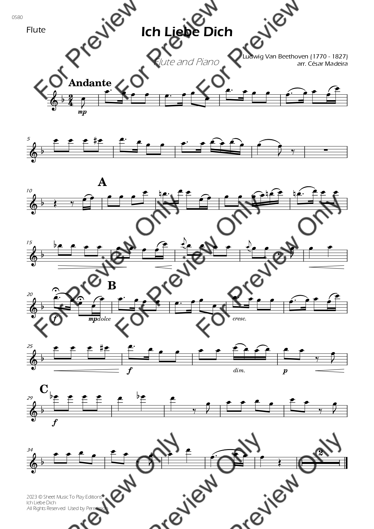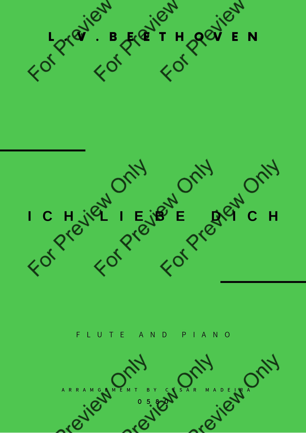 Ich Liebe Dich by Ludwig Van Beethoven. Arrangement for Flute and Piano. With Full Score and Individual Parts. Have fun!