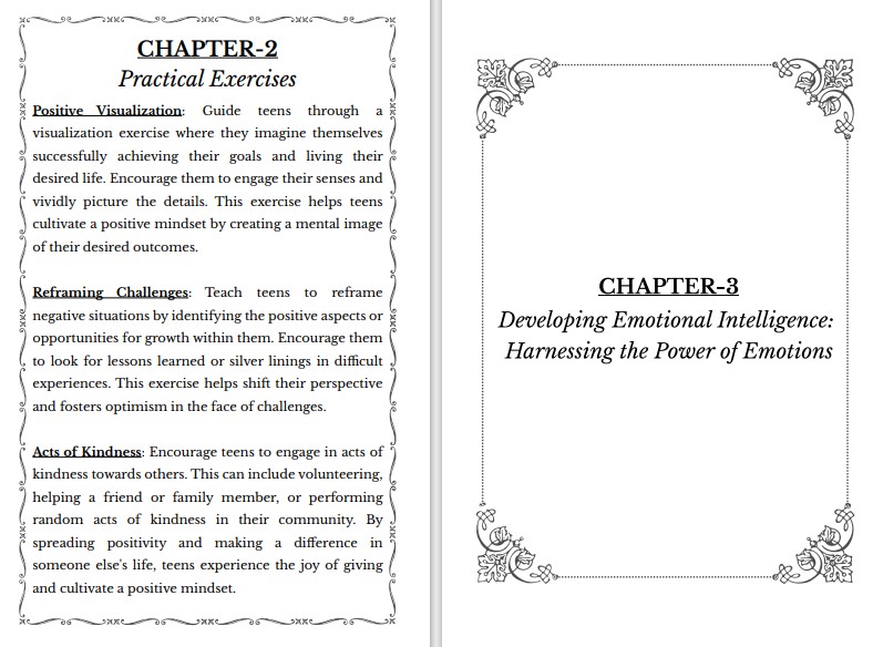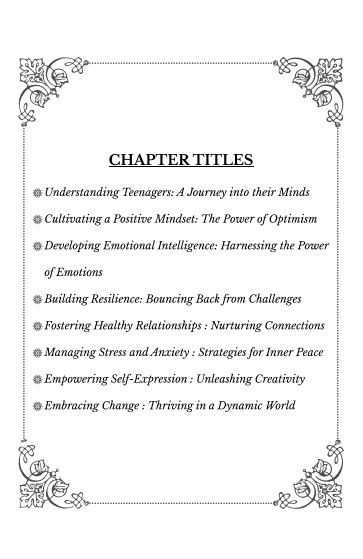 The teenage years can be a time of immense change, self-discovery, and occasional turbulence. It is during this crucial period that we have an opportunity to shape their mindset, instill resilience, and foster a positive outlook that will serve them well into adulthood. This book aims to serve as a guide, providing parents, educators, and mentors with valuable insights and tools to support the teenagers in their lives. It is about cultivating a mindset that enables us to find strength, seek opportunities for growth, and maintain hope even in the face of adversity. By nurturing resilience and promoting positive thinking, we can empower our teens to overcome challenges, build meaningful relationships, and embrace a future filled with possibilities.