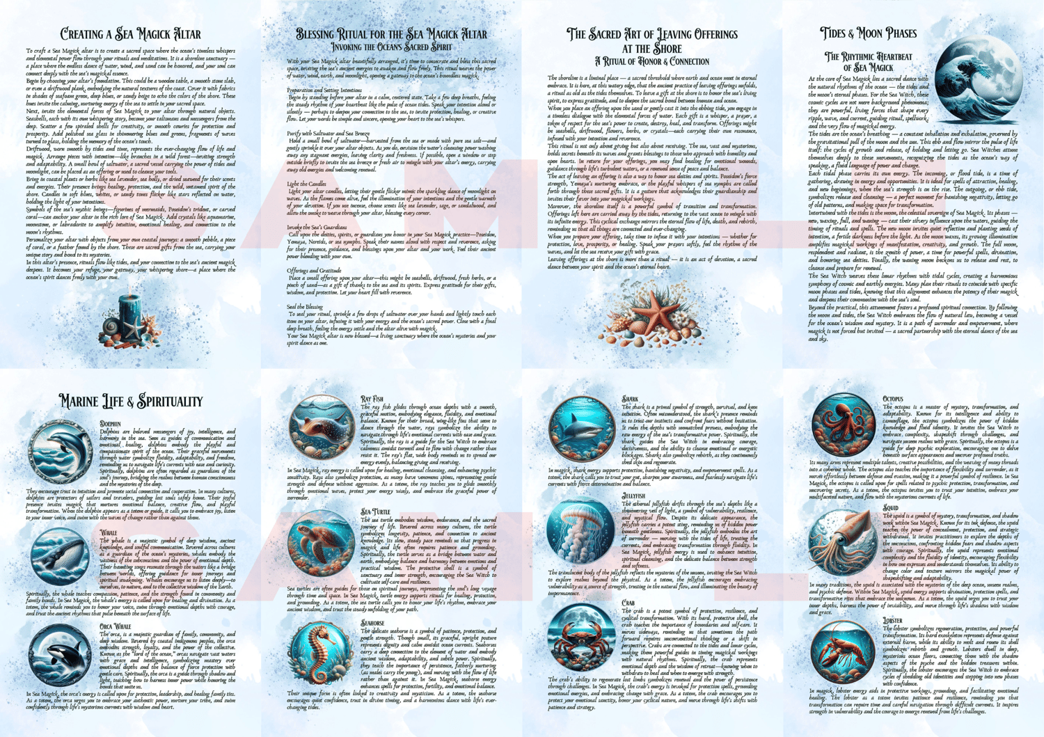 Dive deep into the mystical currents of Sea Magick with this stunning 40-page digital grimoire. Richly illustrated and spiritually immersive, this beautifully designed guide explores oceanic symbolism, sacred rituals, sea deities, coastal herbs, and elemental practices. From saltwater scrying to sea cave portals, every page offers in-depth, soulful insight paired with high-quality artwork that evokes the sacred power of the sea. Ideal for witches, mystics, and ocean-hearted souls, this collection is both a study and a sanctuary. Let the tides guide your magick — and your spirit — home.