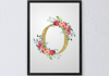 Monogram Watercolor Initial Letter O with red roses on a ton sur ton background and a white background. You will receive two prints.