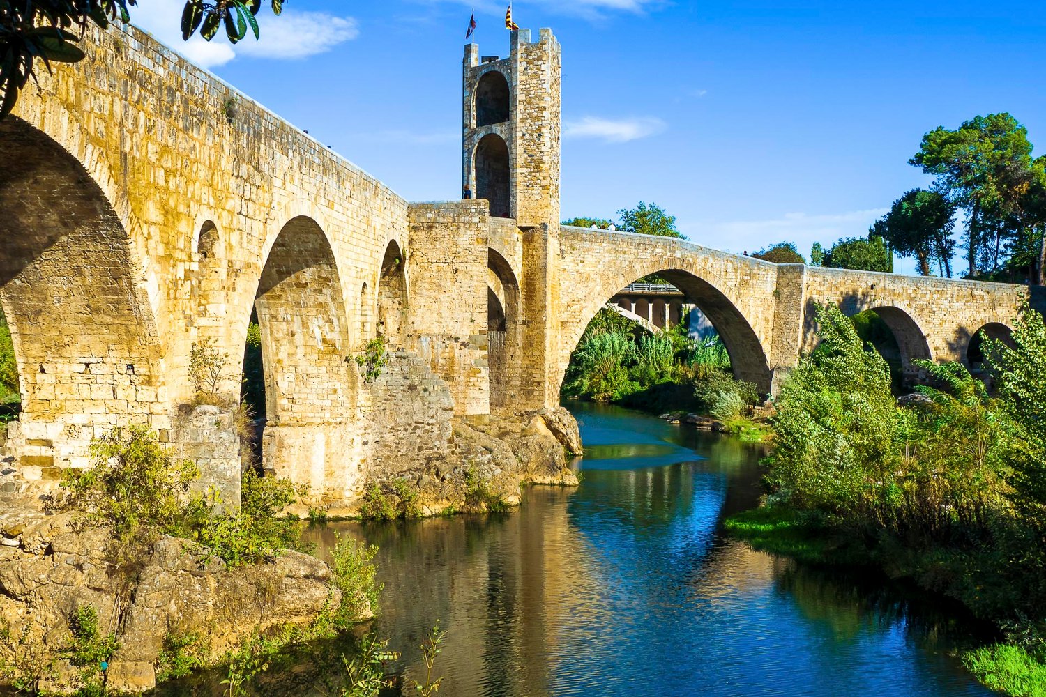 The Besalú bridge seen from below.