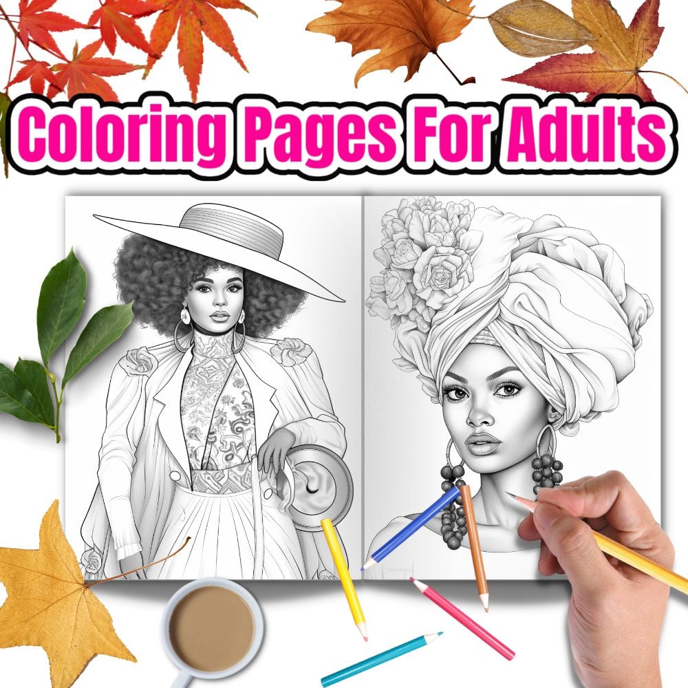 Black Women Fashion Coloring Pages for Teens & Adults – Printable PDF