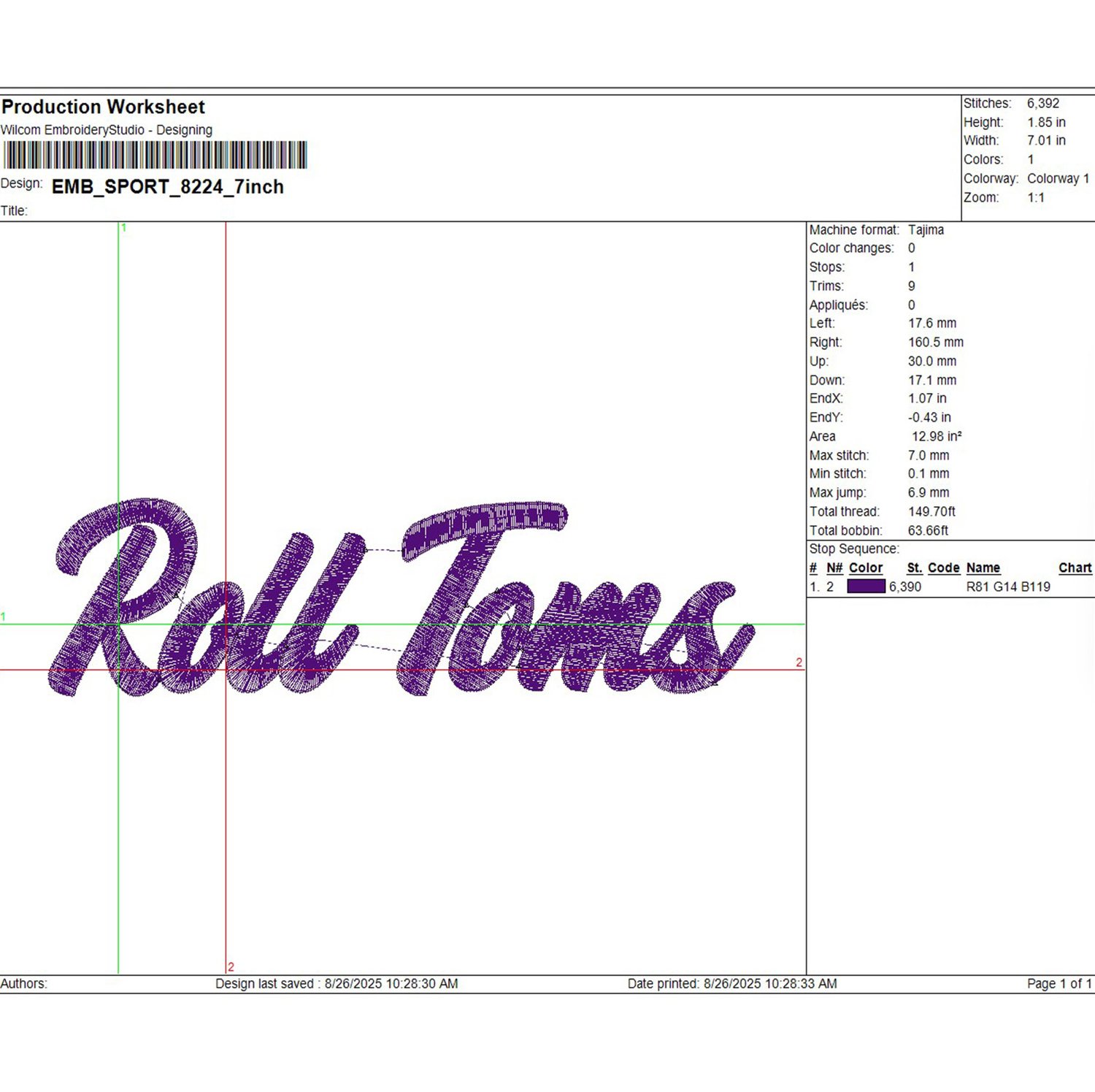 Roll Toms NCAA College Football Team Logo Embroidery Designs, Ncaa Embroidery Files, St Thomas Minnesota Tommies Team Logo Embroidery, Game Day Machine Embroidery Design, Digital Download