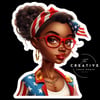 Fun 3D Pixar Style African American Patriotic Fashion Girl Sticker Images - Set of 11 Transparent PNG Images
