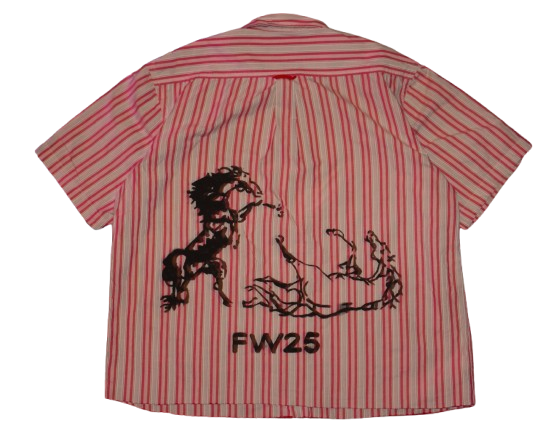 Large Hand Painted Cropped Red Shirt / Chest - 23.5inch / Length 27.5inch / Sleeve - 19inch