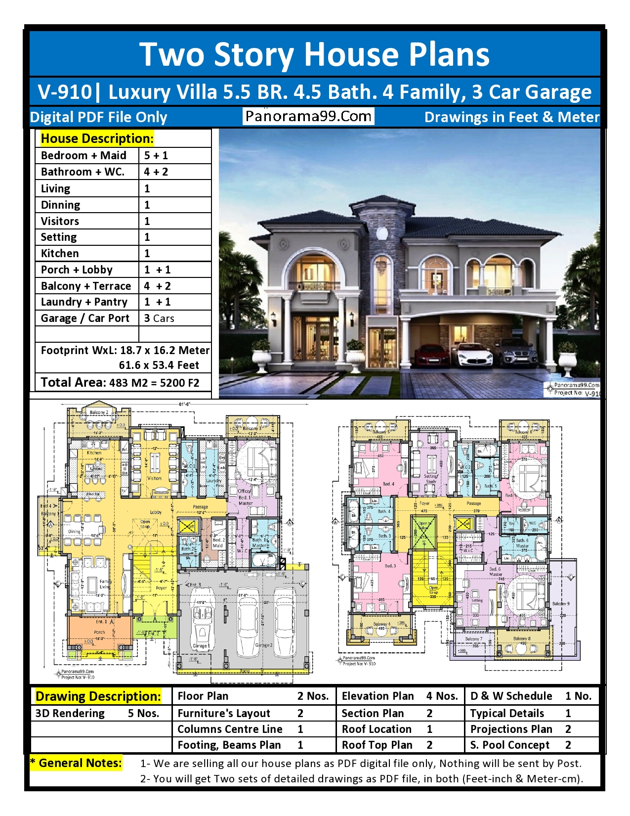 2- You will get Two Sets of detailed drawings as digital PDF files, in both units Feet and Meter.