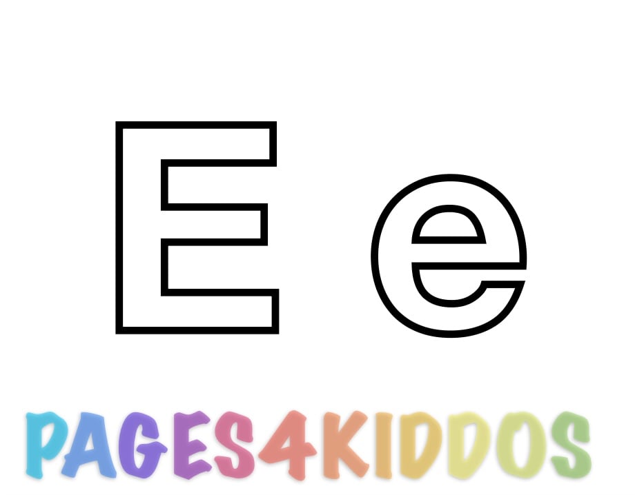 Letter E downloadable coloring pages (DCP) 4pages included