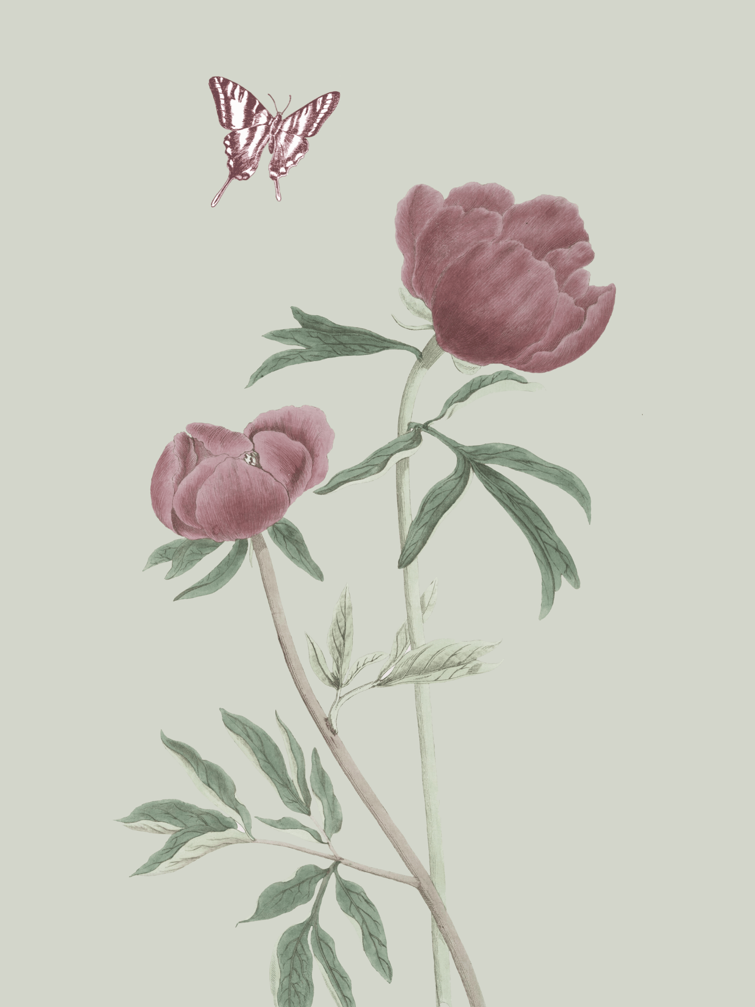 Sage Green Floral & Butterfly Printable – 6x8 Mini Wall Art