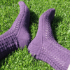 Required Skills: Basic lace knitting (yo, k2tog, ssk), basic sock knitting, kitchener stitch. Stitches used: k, p, yo, k2tog, ssk.