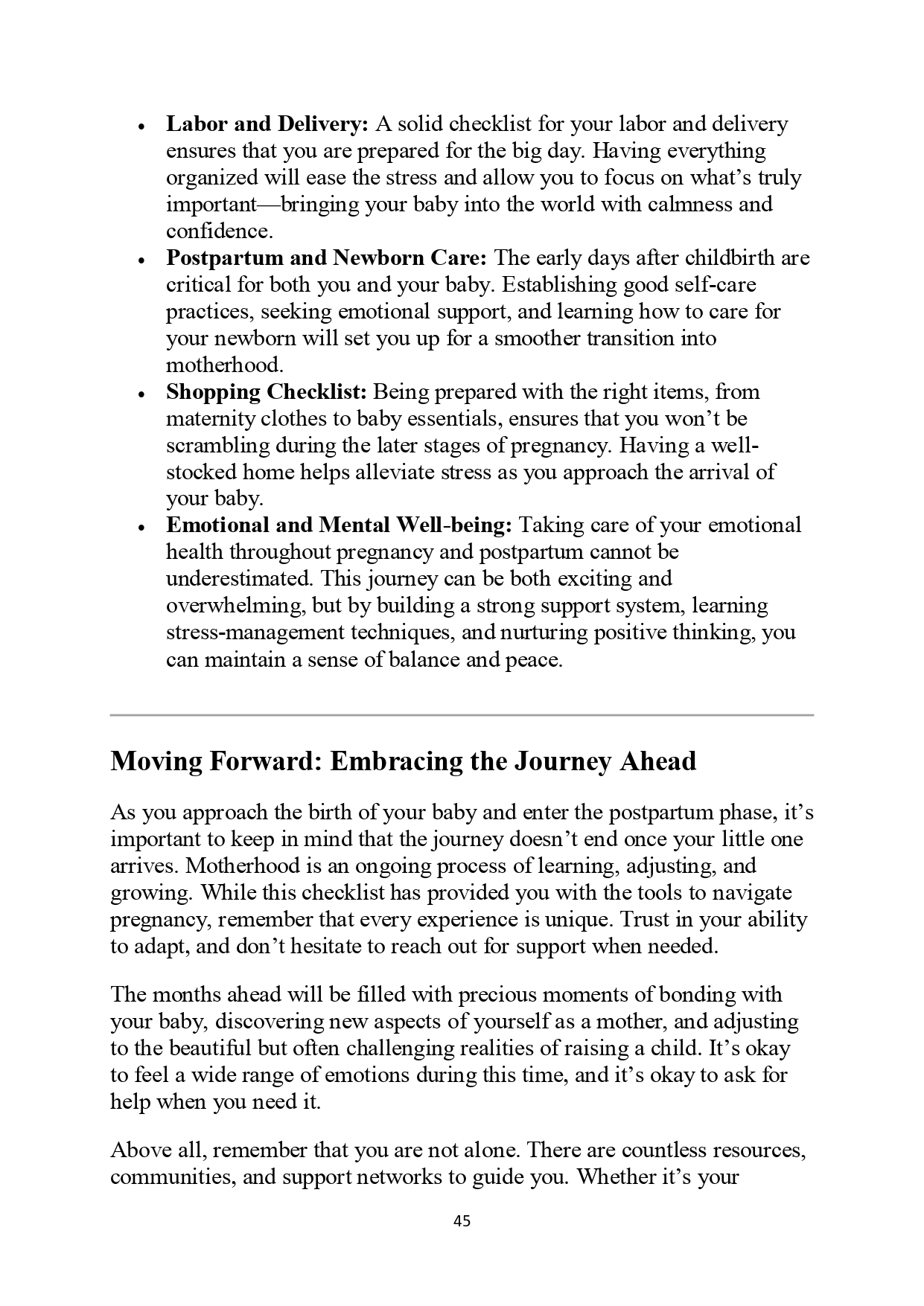 Prepare for your incredible journey into motherhood with confidence. Grab your copy of "The Ultimate Pregnancy Checklist" today and take the first step toward a smooth and joyful pregnancy!