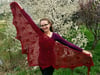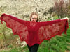 Worked from the center out Ruby Explosion is a versatile lace shawl that can be made to suit any gauge or yarn. To adjust the size simply stop after the shawl has reached the desired size.