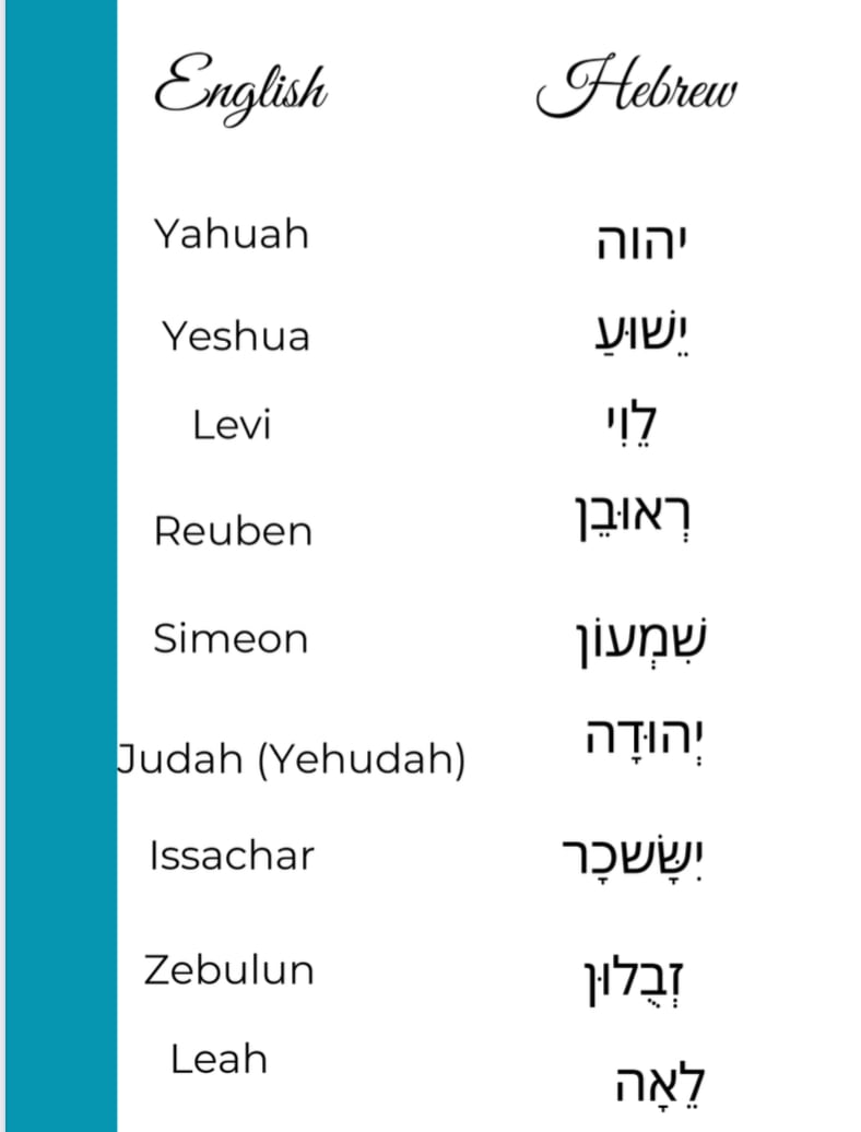 - Each name presented in both Hebrew characters and English transliteration