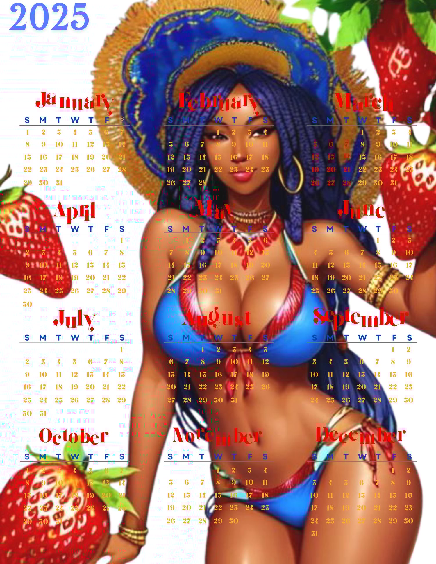 BROWN SPICE STRAWBERRIES 12 MONTH 2025 CALENDAR PAGE