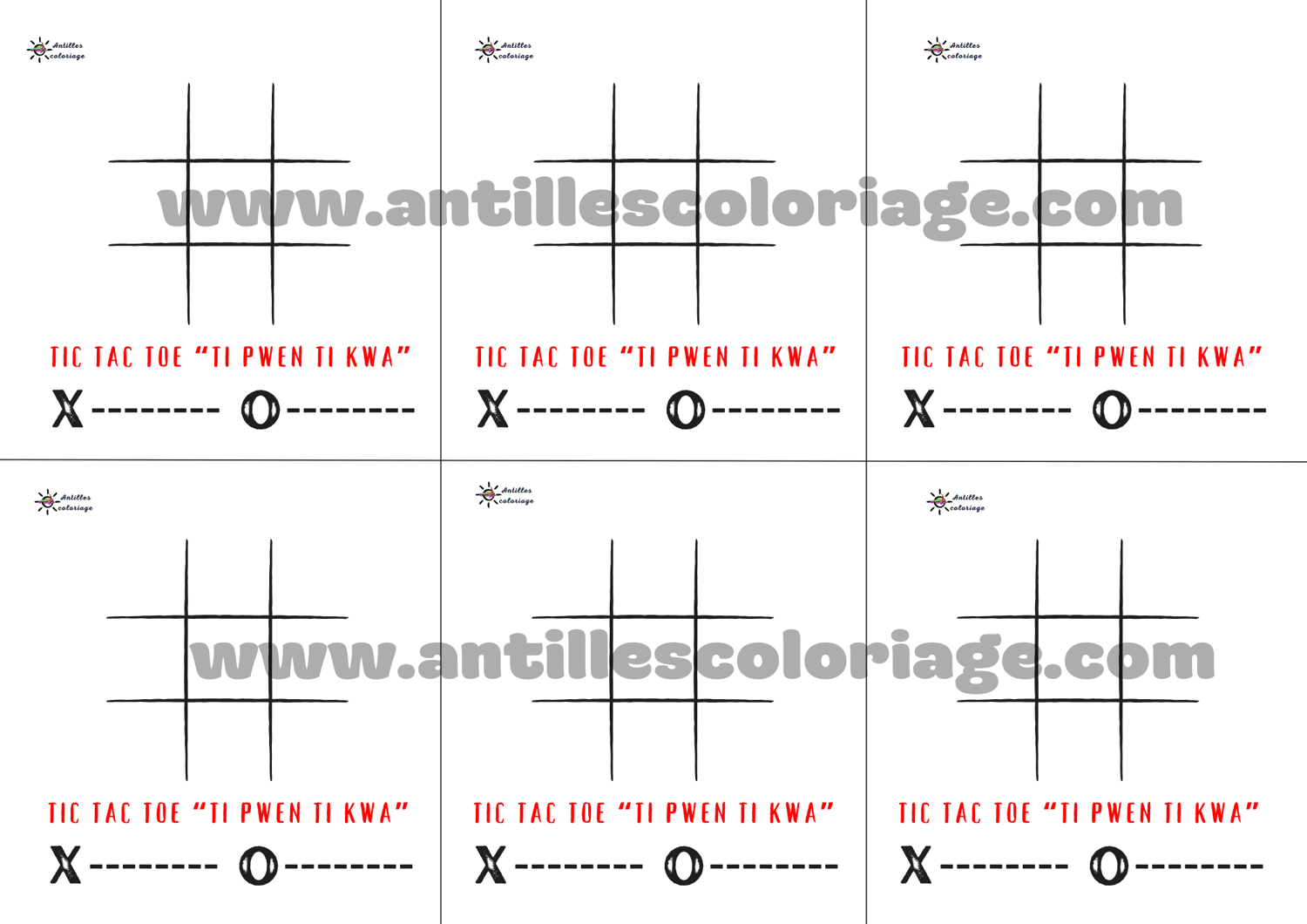 Découvrez "Ti Pwen Ti Kwa", le morpion guadeloupéen à imprimer ! Alignez vos "ti pwen" ou "ti kwa" pour gagner.