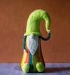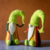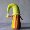 Gnimble is a fun gnome designed to showcase bold yarns like self-striping and variegated colourways.