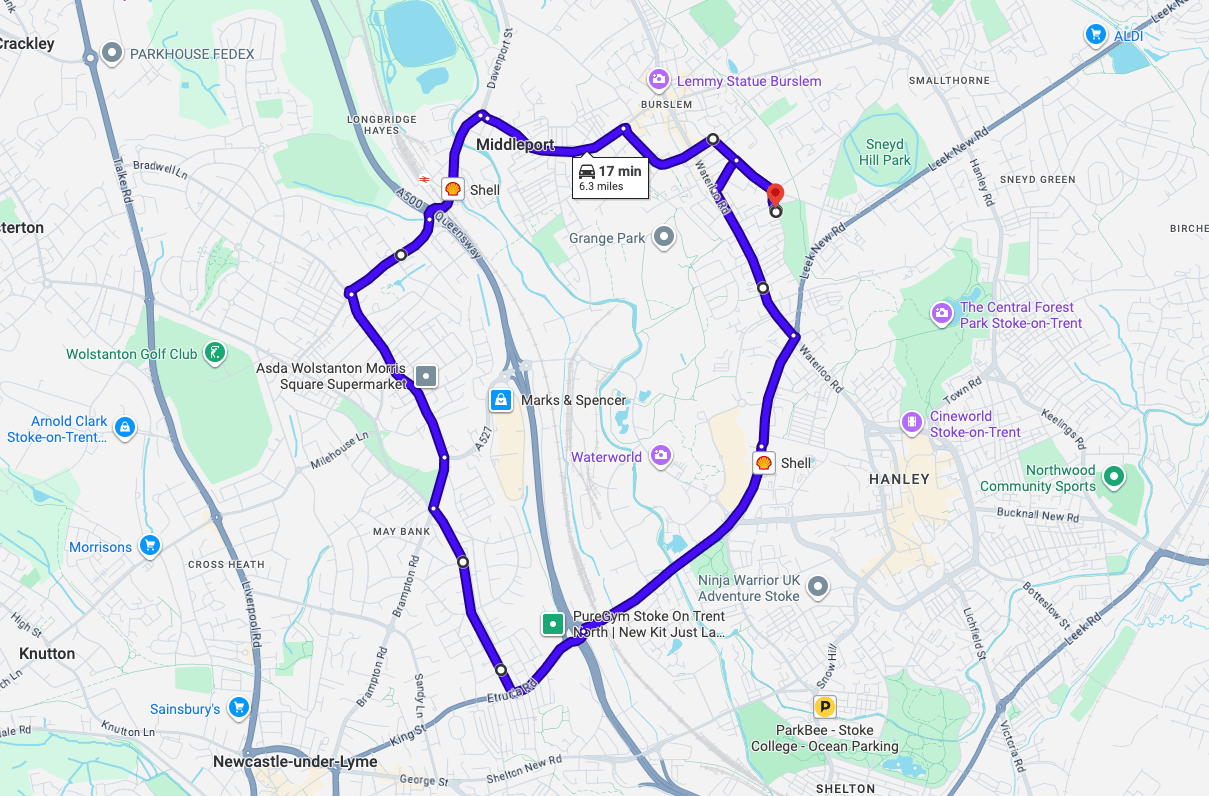 Practise real driving test routes in Stoke-on-Trent (Cobridge) before your exam – open directly in Google Maps
