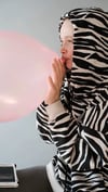 Navi wore a cute zebra onesie when blowing to pop this pink polka dot balloon with an intense pop